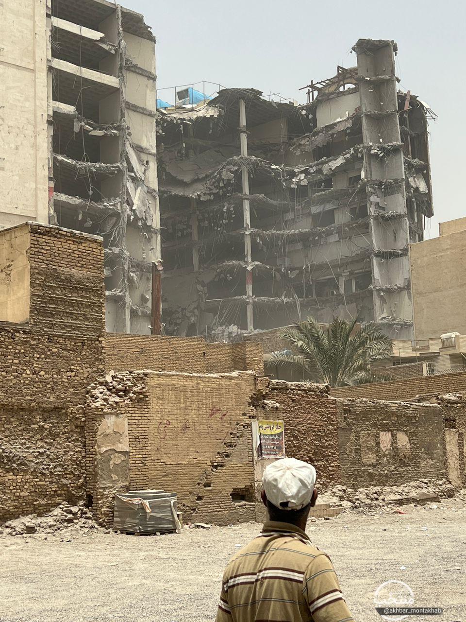 نمایی از ساختمان متروپل در خیابان امیری آبادان که امروز 2خرداد1401 فرو ریخت